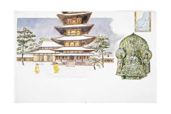 Drawing Depicting The Horyu Ji Buddhist Temple Giclee Print Art Com