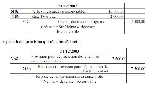 Regularisations Provisions Pour Clients Douteux